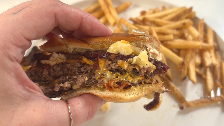You can usually find me raving about my top choice on other rankings I do. The number one pick tends to be pretty clear from the get-go, and it's one I order regularly. Unfortunately, that's not the case with this burger. Why, then, did Buffalo Wild Wings' Bacon Smashed Hatch Chile Burger get the number one spot on my ranking? There's a simple, sad reason: This was one of the only burgers with any flavor to speak of, and the only one that presented me with anything to discuss.