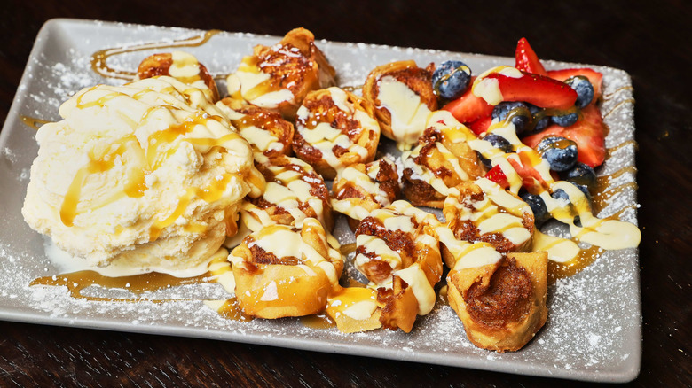 While I'm not a typical banana-leaning dessert fan, P.F. Chang's spring rolls refrain from the artificial intensity of Runt candies or banana specialty drinks. Instead, there was a soft, even slimy distinction to the extra crispy eggroll skins. Decorated with a subtle and conservative amount of vanilla and caramel drizzle, the eggrolls had a scoop of coconut pineapple ice cream on the side, lending the entire dessert pleasant tropical undertones.