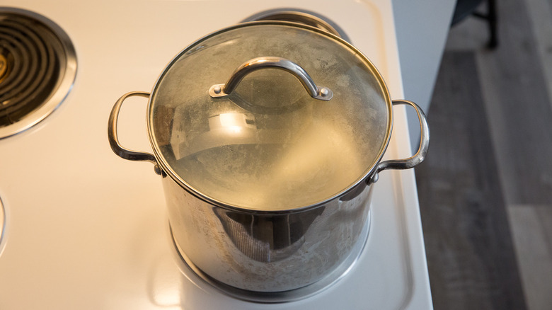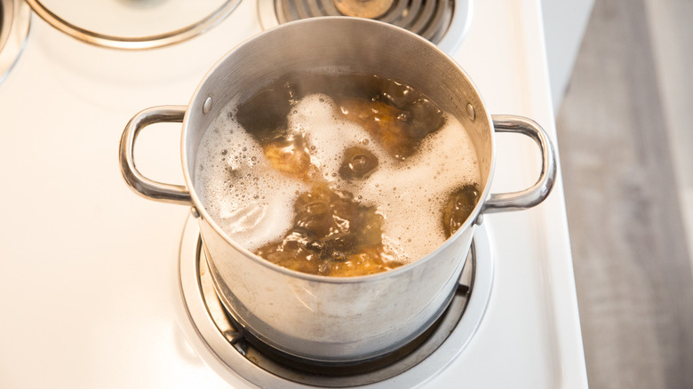 Bring the water to a gentle boil and cook the potatoes for about 30 to 35 minutes, until fork tender.