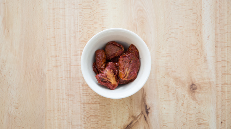 Meanwhile, drain the sun-dried tomatoes well but don't blot them dry.