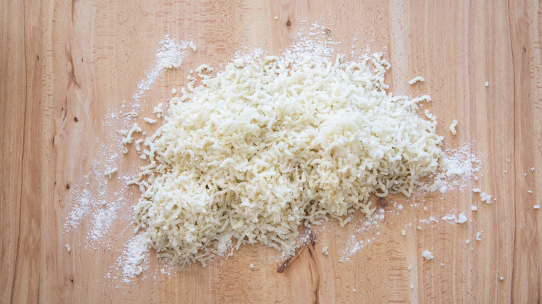 There are a couple tools on the market that help make the process of making gnocchi easier, but you can make gnocchi without them if you don't have them. A potato ricer does more than just rice potatoes, but as the name shows, it's well known as a tool for potatoes because boiled potatoes passed through the holes of a ricer come out in small pieces that fall into a fluffy pile. Ricers are often used to keep potatoes light and fluffy for mashed potatoes, and that's what happens with the potatoes for gnocchi too. As an added convenience, the ricer removes the peel at the same time so you don't have to remove it by hand. If you don't have a ricer, remove the potato skins with a knife after cooking and grate the potatoes on a box grater. This will make them come out fluffier than if you mashed them with a hand potato masher.