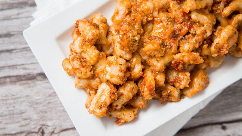 Gnocchi, fingertip-sized ridged pieces of fluffy cooked dough that can be dressed in a variety of sauces, is very popular in Italian cuisine. Although often referred to as pasta, gnocchi are actually a kind of dumpling made with potatoes and flour. What's better than a warm and cozy dish of gnocchi? Well, if you're following a plant-based diet, knowing it's entirely vegan tops the list. Vegan gnocchi is very similar to regular gnocchi, so even omnivores won't be able to tell. The key difference is that this vegan recipe leaves out the egg, but it isn't necessary to hold the gnocchi together. They hold their shape perfectly with just potatoes, flour, and a pinch of salt.