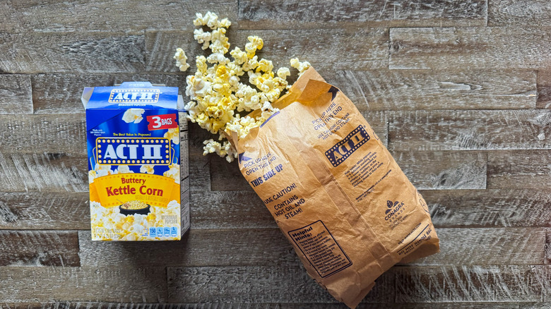 This Act II popcorn is a prime example of how looks can be very, very deceiving. This box of microwave popcorn, which only comes with three bags, is marketed as "buttery kettle corn." It even has a kettle on the label that insinuates it's kettle-adjacent. But when I prepared it according to the package directions and took a bite, I was just met with lackluster, buttered popcorn with just a little tinge of sweetness to its flavor. It's about the farthest thing from kettle corn possible.