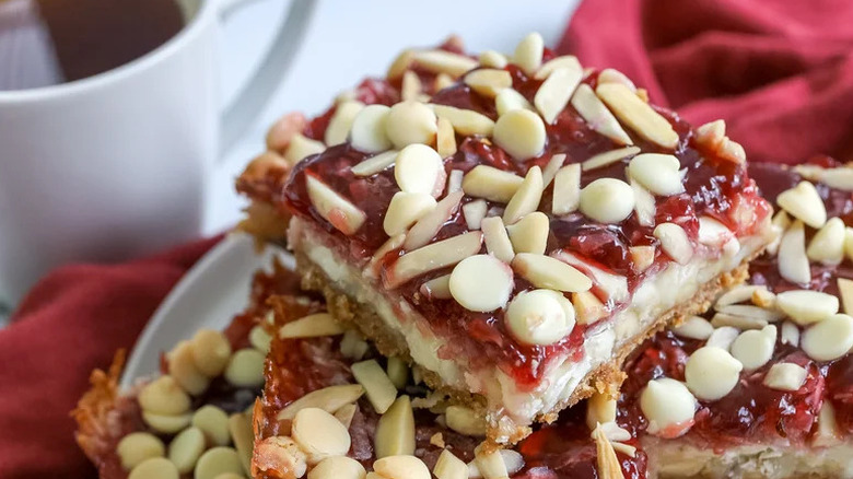 Sometimes, milk or dark chocolate can feel a bit heavy during big holiday feasts (especially after you do some digging in your Easter basket), but white chocolate keeps things light while providing enough of that rich creaminess that we typically associate with chocolate. Enter these raspberry white chocolate layer bars. Raspberry and white chocolate go together perfectly, presenting a nice combo of sweet and tart flavors, while the slivered almonds give these bars some much-needed crunch and complexity.