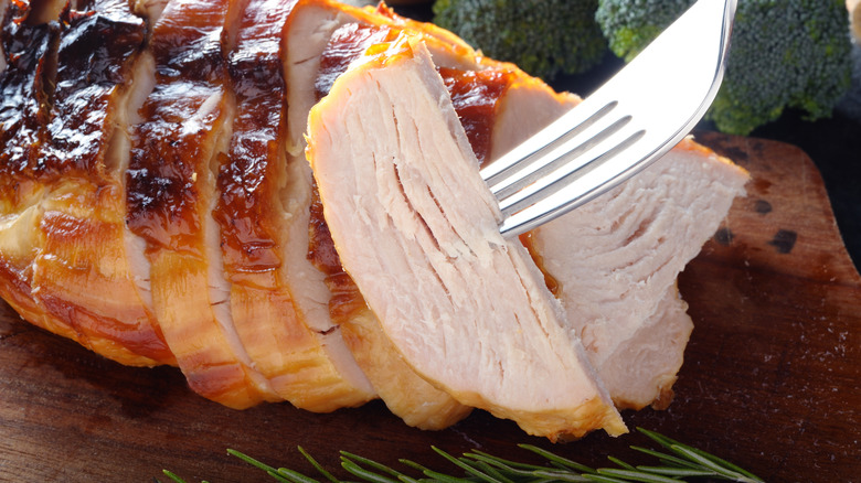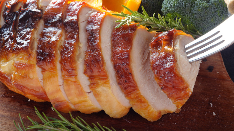 As parting words, here's one thing you should know if you're certain you have a pinkened turkey: Don't bother fixing it. One of the more common culprits, cytochrome C, might require you to cook your turkey up to 220 degrees Fahrenheit to completely break it down — at that point, your roast turkey wouldn't be any different from cinderblocks. Just enjoy yours as-is; think of it like a medium-rare turkey (or give it a coat of mayo to pretty it up while doubling the flavor).