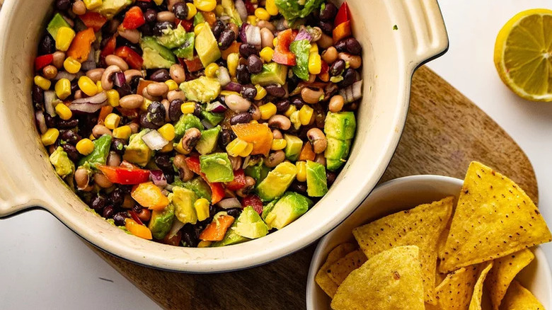 Much like using tartar sauce or remoulade as a dip for crab cakes, you want to serve a side dish that has enough zesty flavor as a counter to the seafood-rich cakes. Cowboy caviar as a side dish strikes a balance between briny seafood and a punch of bold flavor. If you're a fan of using Old Bay seasoning for your crab cakes, try adding a mix of smoky paprika and savory garlic to your cowboy caviar for a complementary combination of seasonings.
