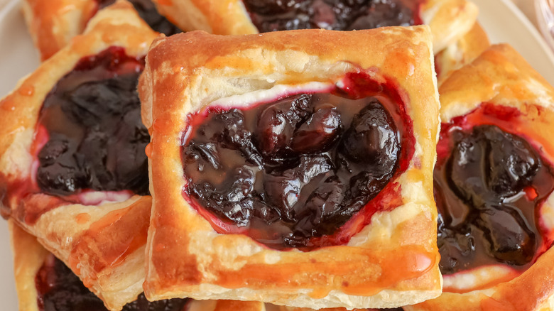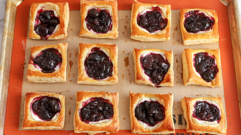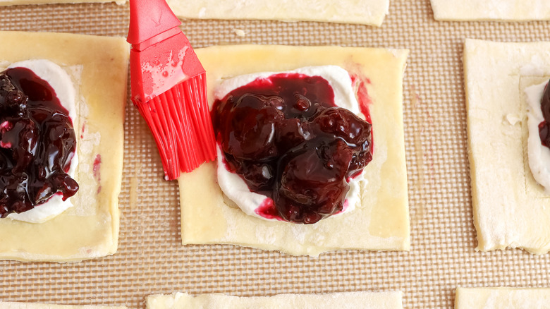 Morone tells us that she loves these "because they have so much going on flavor-wise, but it all works together — the sweet cherries, the creamy cheese, the flaky pastry, and that spicy-sweet honey drizzle. It's an unexpected combo that just makes sense." The key is that nothing here is too sweet. The cherries have just enough sugar to enhance their natural flavor without turning this into a dessert, the goat cheese adds a bit of tang that keeps everything balanced, and the thyme adds an earthy flavor. Whether you're usually a sweets person or not, these tarts offer something a little different.