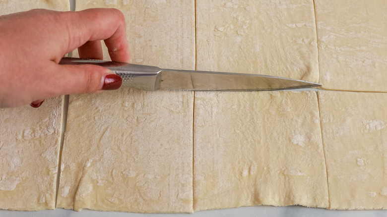 Use a sharp knife to cut the pastry into 12 equal squares.