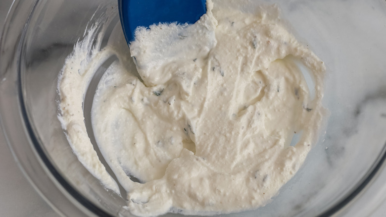 - In a small bowl, mix together the goat cheese, ricotta, thyme, salt, and pepper until combined and smooth.