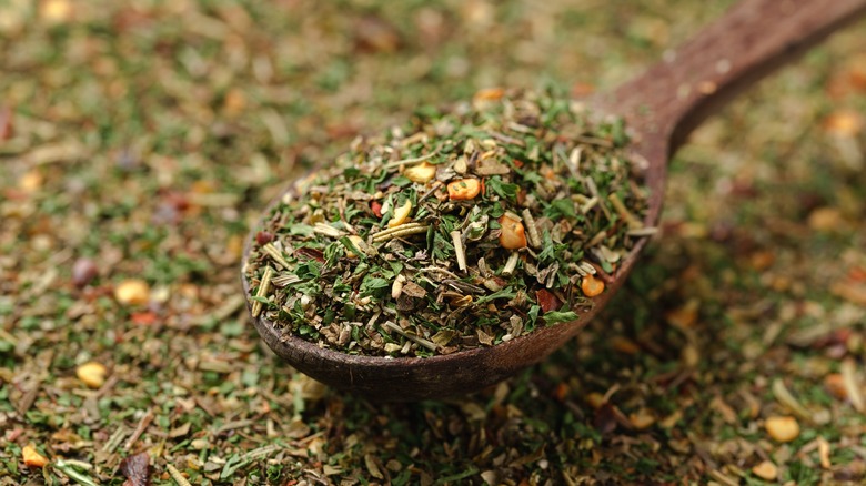 There's more that Italian seasoning can do than be sprinkled on pasta. For instance, did you know that you can also use it to make an awesome homemade salad dressing? Adding a pinch to a sweet-and-tangy Catalina dressing, for instance, can give it a pretty unique herbal twist. But Italian seasoning will work best in dressings that are already herb-forward by further deepening the existing flavors, like a fresh herby lemon vinaigrette.