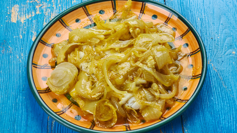 Head to South Africa, and you'll likely encounter pickled fish during Easter time. This recipe typically calls for white fish such as hake or cod, which is fried (sometimes in a batter), before being left to soak in a mixture of curried onions and vinegar. The result is a deeply flavorful, tender fish dish with plenty of spice and natural sweetness from the onions.