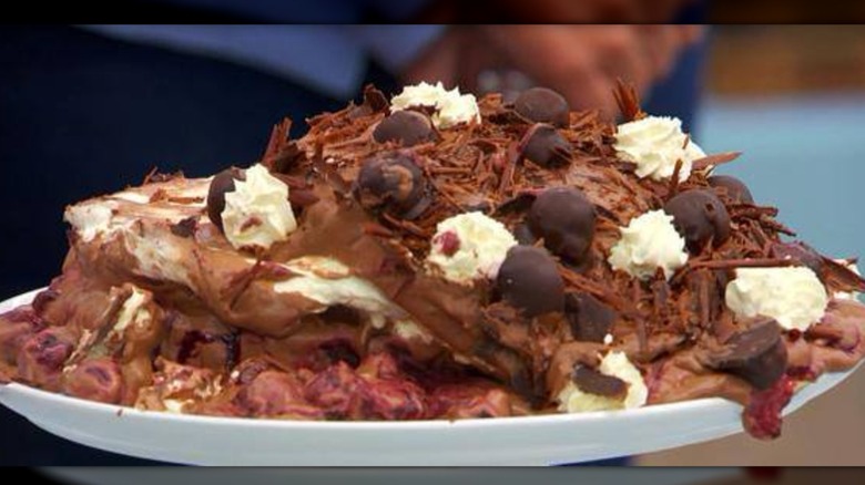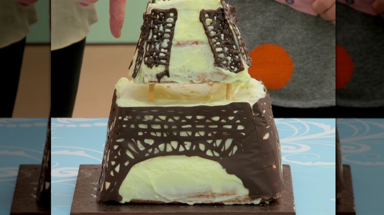 The detailed iron work made of chocolate was well-executed on the base of the cake but the top scaffolding made entirely of chocolate collapsed and crumbled in Terry's hands, forcing the contestant to present his cake to the judges without the top layer. Unfortunately, it wasn't just the weather that made this cake one of the worst to appear on the "Great British Bake Off." According to Prue Leith the flavors of the cake itself were rather boring too.