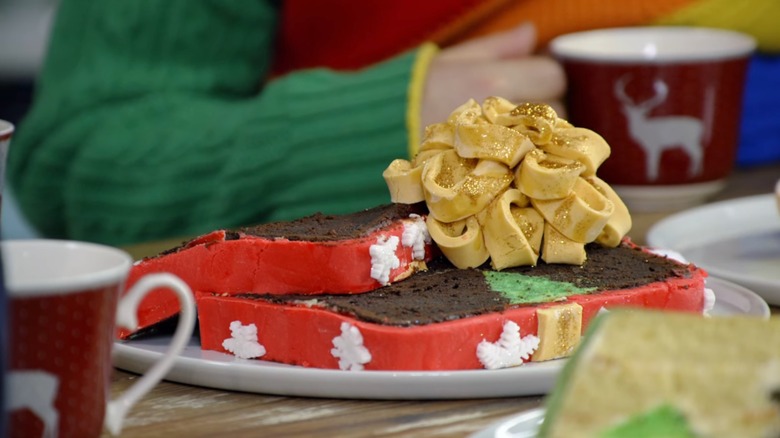 In season 2 of "The Great British Baking Show: Holidays" on Netflix, Flo Atkins, a fan favorite from a previous season of the "Great British Bake Off," returned under the tent only to make one of the worst cakes in the series history. For her showstopper cake, Flo added an entire bottle of mulled wine to her mulled cake mix and added a three-cheese buttercream sweet fondant frosting to top it off. The main flavor of the cake Flo shared is mulled wine so if you're not a fan, this may not be the cake for you.