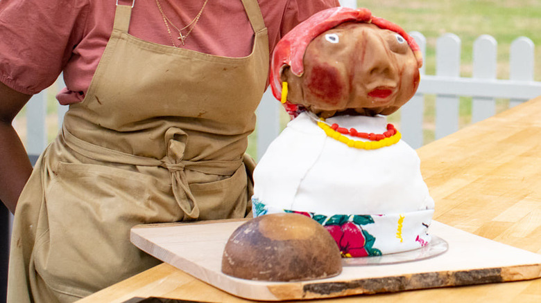 If you didn't know that Loriea Campbell-Clarey modeled her tribute showstopper cake after Jamaican poet, folklorist, actress, writer, and educator Louise Bennett-Coverley more commonly known as Miss Lou, you are not alone. While the Jamaican born and raised contestant was not lacking in creativity during Collection 8, Episode 1 of the Great British Bake Off, her bust cake of Miss Lou was exactly that, a bust. The cake featured a head scarf and a necklace which Miss Lou also accessorized herself with. But that seems to be where the similarities come to an end.