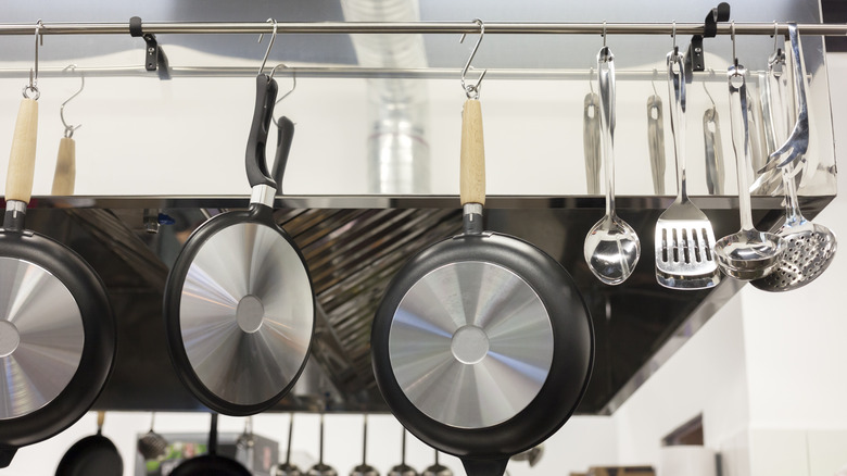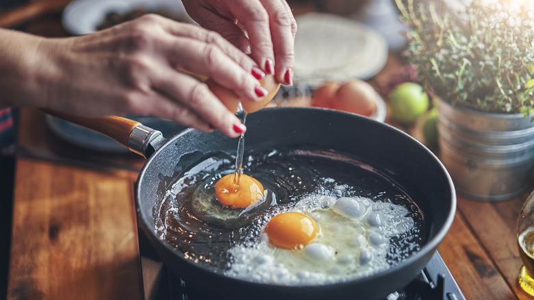 Frying pans are mission-critical cookware. The best nonstick skillets and frying pans are the workhorses of any kitchen, especially if you like to make grilled cheese sandwiches on repeat for lunch and fried chicken for dinner in the evening. This can lead to quite the conundrum in the morning if you want to fry an egg and all of your frying pans are dirty, but it doesn't have to be problematic. Just use a metal ladle. Per a TikTok video posted by Andrew Zimmern, if you have an egg spoon, which looks a lot like a ladle, you can use it on the stove as a makeshift frying pan to fry an egg.