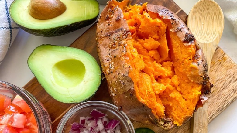 Sure, you can bake sweet potatoes in the oven. But, it can take several hours and heats the whole house. This air fryer-baked sweet potato recipe solves both of those problems. The sweet potatoes cook in less than an hour, and you won't be running the oven at all to waste energy or turn your kitchen into a sauna. Even better, this recipe is simple to make — and gluten-free. You only need the sweet potatoes and a little bit of avocado oil and salt and pepper for seasoning.
