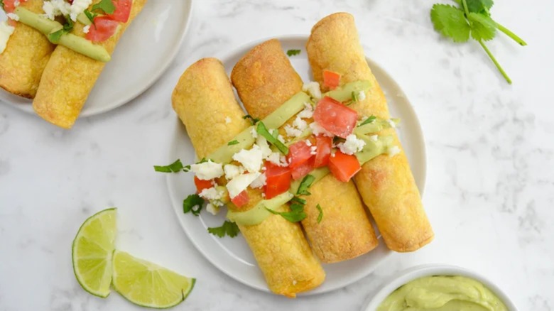 Air Fryer Chicken Taquitos And Avocado Crema