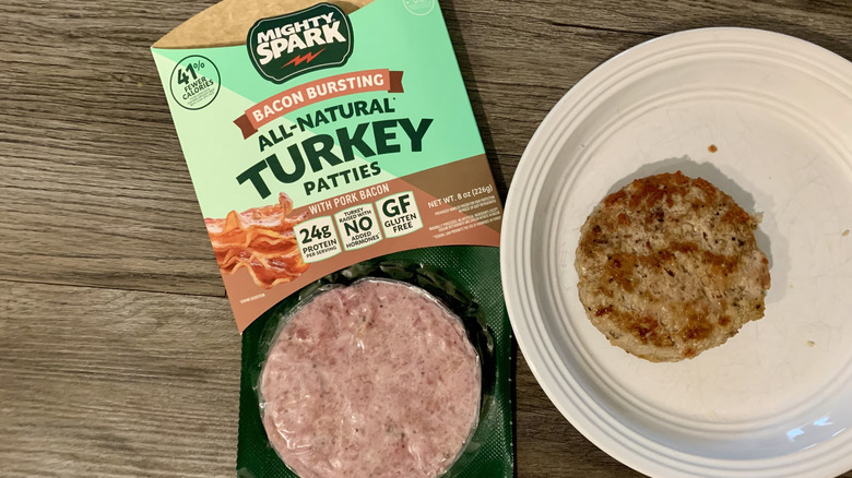 It's also worth noting that these burgers had a fantastic texture. Think the opposite of a thin, lacey-edged diner smashburger; these are thick, juicy, and have a great mouthfeel. Not a bit of dry meat in the whole thing, perhaps aided, again, by the greasy bacon. Because yes, this burger is a little greasy, more than a little salty, and slightly extravagant. They're definitely not for everyday eating, and that's also due to the fact that I paid $5.99 for two patties, meaning each burger cost $3.00. They're totally worthwhile for a splurge, though! The brand offers Queso Fresco Jalapeño Turkey Patties, in addition to Bacon Bursting, but no basic plain turkey variety (or those would have been the ones I tasted for this ranking.)