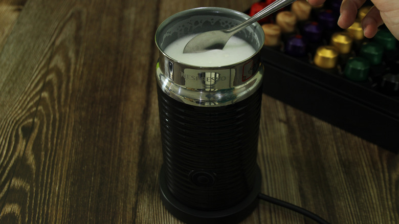 Usually when your Nespresso Aeroccino isn't frothing your milk properly, it has more to do with the milk you're using than it does the machine. Sometimes it could also be because you aren't cleaning it as regularly as you should. But, in rare instances, it could have something to do with your Aeroccino's whisk, or the lack thereof. Made up of two detachable parts and non-dishwasher safe, there are a plethora of instances that might lead your machine's whisk to become damaged or disappear entirely — many of which can only be blamed on yourself, or the same monster hiding inside your dishwasher that's eating up all your spoons and forks. Luckily, replacing your broken or misplaced Aeroccino whisk is as simple as buying yourself a new one.