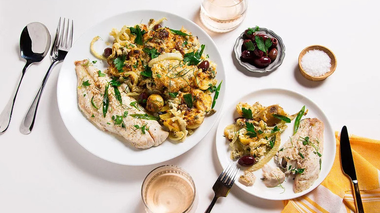If you've never tried cooking red snapper before, this recipe for Sheet Pan Snapper with Potatoes and Fennel is your chance to explore a new realm of seafood dishes. Served with potatoes, fennel, and olives, this Mediterranean-inspired dish will have you feel like you're dining right next to the sea — even if you're stuck at home during a particularly busy work day. Since it only takes 40 minutes to make, you don't even really have to plan ahead to enjoy this luxurious meal any day of the week.