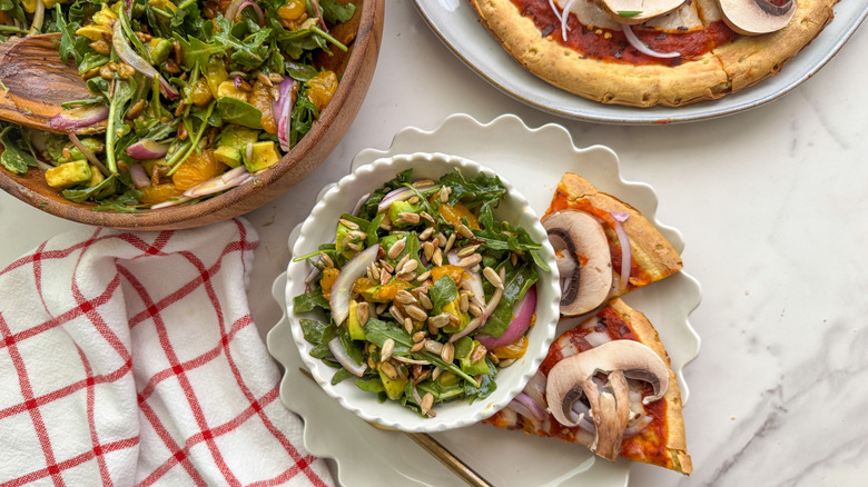 "This salad will elevate your pizza night with a fancy looking salad that comes together in minutes," wellness coach and recipe developer Miriam Hahn says. "It's full of nutritious ingredients and can also be served with many other main entrees." So while this salad was designed with a pizza pairing in mind, there are many applications in which this recipe would come in handy, but we'll touch more on that down the line.