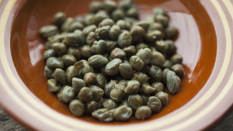 Capers are another ingredient that we see again and again in homemade tartar sauce recipes. They are however somewhat elusive in the store-bought tartar realm, and that's a real shame. These tiny, briny gems are actually pickled flower buds from the caper bush, and despite their small size, they offer a pretty mighty burst of flavor. Thankfully, capers are a readily available add-in, and only require a quick chop before tossing them into a store-bought tartar sauce. Just chop them as finely as you can so they distribute nice and evenly throughout the sauce. They should add a distinctive tangy brightness and make things a touch saltier too, since most capers come preserved in salt or brine.