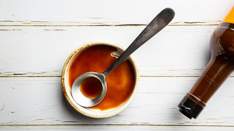 The holy grail ingredient for packing a recipe with savory depth, Worcestershire sauce might be just the thing your store-bought tartar is missing. This flavor-rich condiment is typically made from vinegar, anchovies, molasses, and tamarind, as well as other aromatics and seasonings. It's loaded with bold, complex notes of umami, and you'll only need a few dashes to give your tartar a serious upgrade. To enhance a cupful of tartar sauce, drizzle over a teaspoon of Worcestershire sauce and stir well. If you're working with a vegan-friendly tartar sauce, and want to keep things plant-based, you can also get hold of plant-based, anchovy-free Worcestershire sauce alternativesin many large grocery stores, or even try making your own.