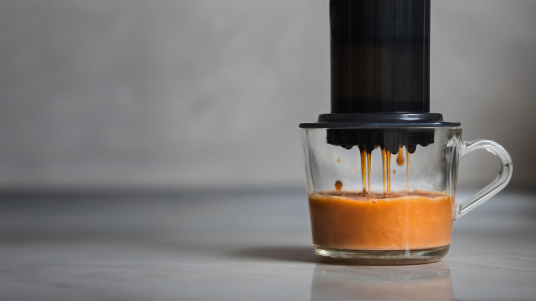 Espresso is one of those simple delights in life, though some may call it a survival tool. High in caffeine and high in flavor, espressos can offer the kickstart you need on a drowsy afternoon or end a meal on a delicious high note. The problem, though, is that forking out dollars every time you crave one can really add up, quickly becoming an expensive indulgence. However, there are ways that you can make espresso at home without a fancy espresso machine, which can cost an arm and a leg. You just have to know how to do it. Some methods produce an espresso that is almost indistinguishable from the "real deal," while others aren't quite as smooth or rich as what your barista would whip up — but they'll certainly do the job.