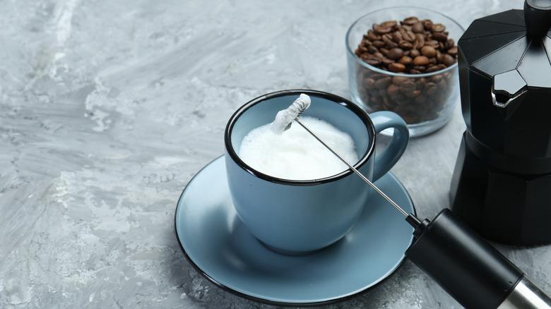 As with many of the other methods, grind up your coffee beans to a fine grind. You will need about 2 tablespoons when all is said and done. Add this to a tall heat-insulated glass or a mug and pour enough water over it to cover the grounds, but don't overdo it. Get in there with your milk frother and froth vigorously for 30 seconds before letting the mixture rest for the same amount of time. This way, the grounds can sink to the bottom of the cup and settle there. Preheat another mug with boiling water while you're waiting, then discard the water. Strain your espresso mixture into this mug using a coffee filter or some other strainer. Then, add some more hot water to top it off and enjoy your homemade espresso.