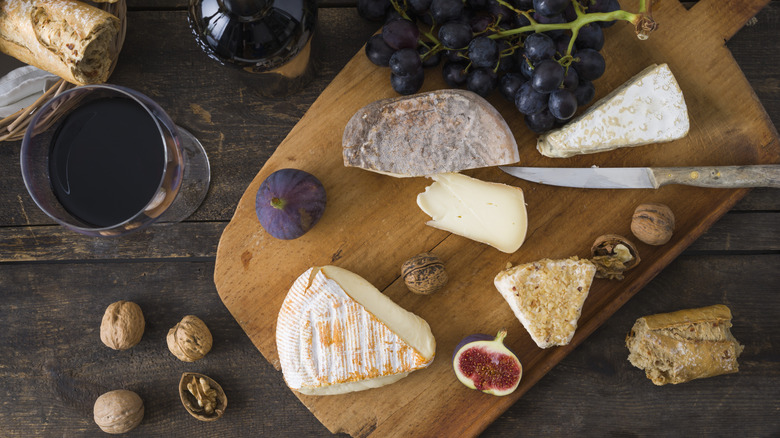 First things first, the French cheese course is a far cry from a French-themed charcuterie board, which features cheeses, meats, fruits, nuts, and spreads on a common board. Instead, this fromage-forward course is one step in a long, structured, sit-down meal with multiple courses. In French culinary tradition, the cheese comes after the entree course and before dessert — never, ever as an appetizer. Sometimes, a cheese course will be served in lieu of a dessert course altogether. Although, as Jean Anthelme Brillat-Savarin, 18th-century French politician and author of the seminal "Physiologie du goût" aka "The Physiology of Taste", once famously quipped, "Dessert without cheese is like a beauty with only one eye," (via Goodreads). So, the efficacy of the cheese course to wear more than one hat is somewhat debated, and anyway, the whole point of this unique course it to let French cheese shine as the jewel it is.