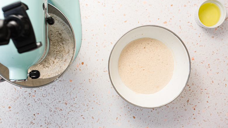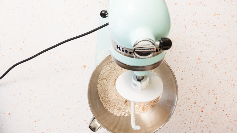 - Combine the flour blend, psyllium husk powder, xanthan gum, and salt in a stand mixer bowl with a paddle attachment, and stir just enough to combine.