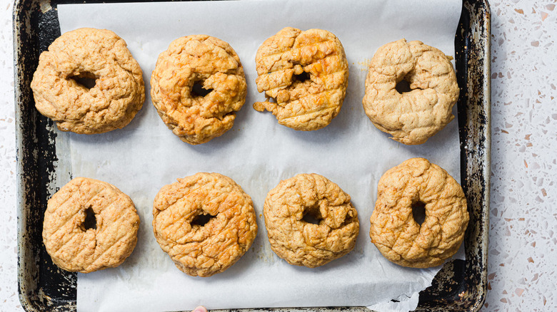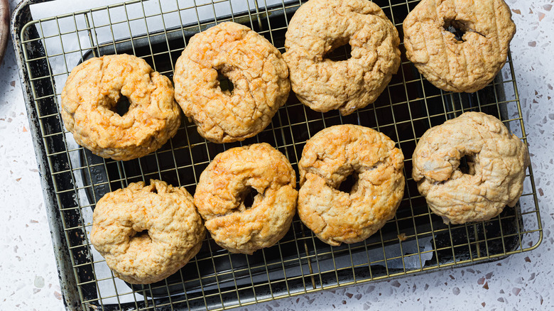 - Place the shaped bagels on a prepared sheet, cover with oiled plastic wrap, and proof for 20 minutes.