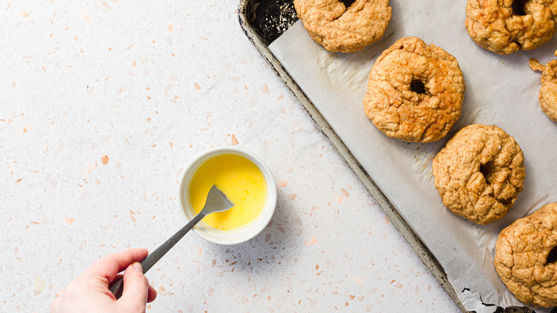 - Brush the bagels with the reserved egg yolks, then generously coat them with the everything topping.