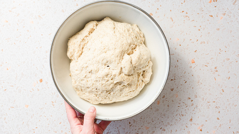- Transfer the dough to the bowl, and let it rest covered for 30 minutes in a warm location.