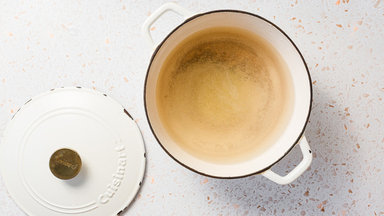 - To prepare the poaching liquid, bring the water, honey, and baking soda to simmer in a wide pot.