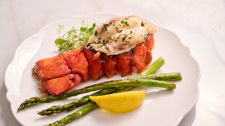 Lobster is versatile enough to be submerged in creamy, flavorful soups and stews, but it also shines on its own with just a little bit of butter and lemon. For simple air fryer lobster tails, you will just need butter, garlic, lemon, parsley, salt, and the lobster tails themselves, which you can find fresh or frozen at your local fishmonger. Most months you're likely to find smaller, 4 to 6 ounce tails for a reasonable price, but in late spring (May and June) and early fall (September and October) try your luck with larger, meaty tails. Because lobsters are closer to shore, abundant, and less in demand during these months, you'll have a better chance finding large tails at reasonable prices.