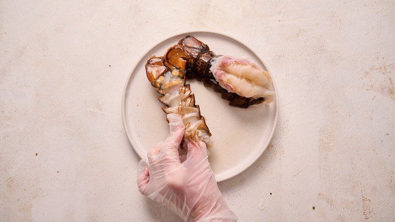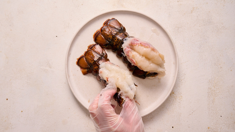 - Turn the tail over and gently crack the spine to release the meat from the shell.