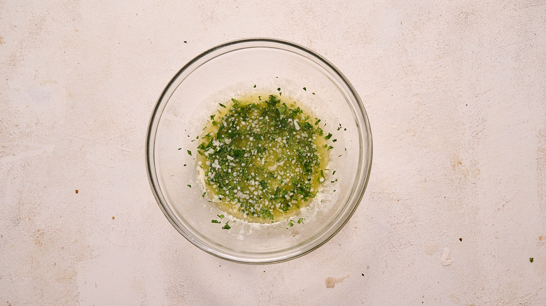 - Combine the melted butter, lemon juice, parsley, garlic, and salt in a small bowl.