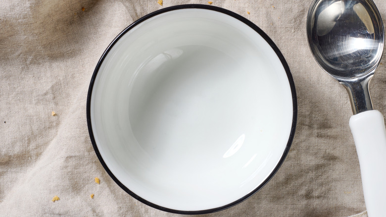 Processors make light work of chopping up aromatics in large quantities. However, their sharp blades can create a paste if you accidentally pulse your ingredients for too long. While this is perfect for making the base of a garlicky Thai curry or a smooth, homemade peanut butter, it isn't ideal if you want more of a textured finish for a tasty olive tapenade or chimichurri recipe. Using a mortar and pestle is an awesome solution because it gives you better control over the final consistency of your ingredients, whether it be fresh green chili and a stalk of lemongrass, or aromatic coriander seeds and fiery galangal. But one thing that deters some people from investing in a mortar and pestle is its heavy weight. Luckily, there's a simple trick to fashioning one at home cheaply using nothing but a sturdy bowl and an ice cream scoop.