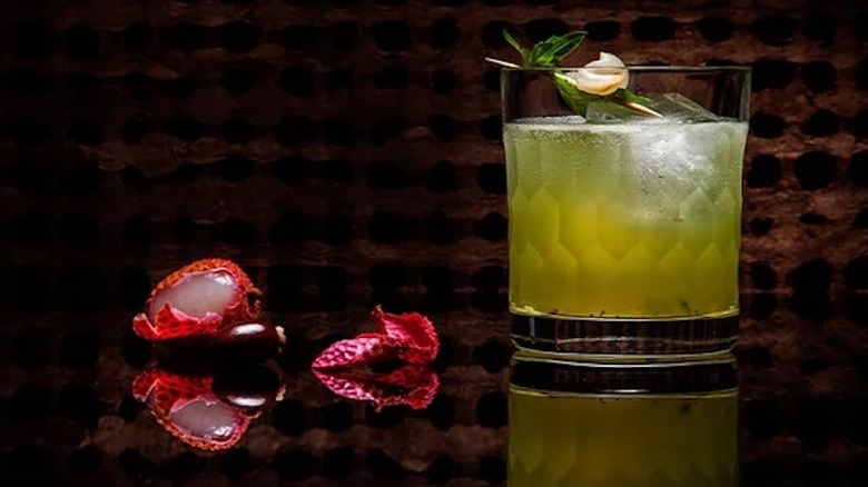 If you want to save time in the kitchen and behind the bar, skip the effort of make-ahead cordials and syrups and muddle fresh basil right into a summer cocktail. To prepare a luau basil rum cocktail worthy of your next tropical get-together, start by muddling a handful of fresh basil leaves in a shaker with St-Germain before adding rum, lime juice, and ice and shaking thoroughly until the drink is chilled. Strain the mixture over a glass of ice, and top with soda water, a sprig of fresh basil, and a lychee.