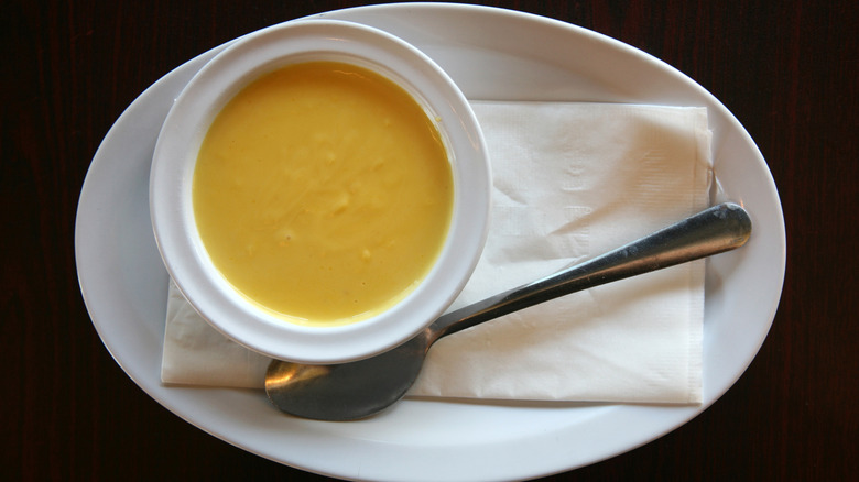 When you're craving a creamy dressing that doesn't require any mayonnaise at all, whip up some hollandaise sauce. This creamy, lemony dressing is neutral enough that it can be added to a wide variety of dishes, including fried fish. That bright flavor from the lemon, though, works especially well with fried foods, since it gives rich dishes the burst of brightness they need. In addition to lemon juice, you'll need egg yolks, unsalted butter, and cayenne pepper to make this easy sauce. Pour it on top of your fried fish (or dip the fish into the sauce), and it might just become a staple on fish fry nights.