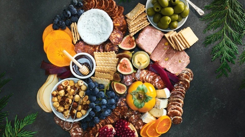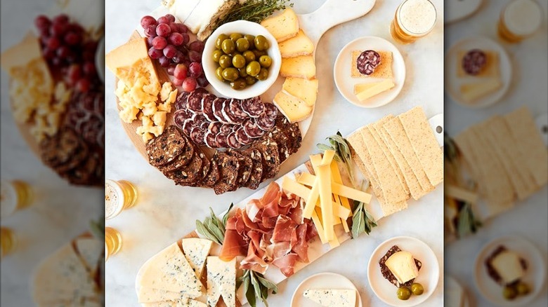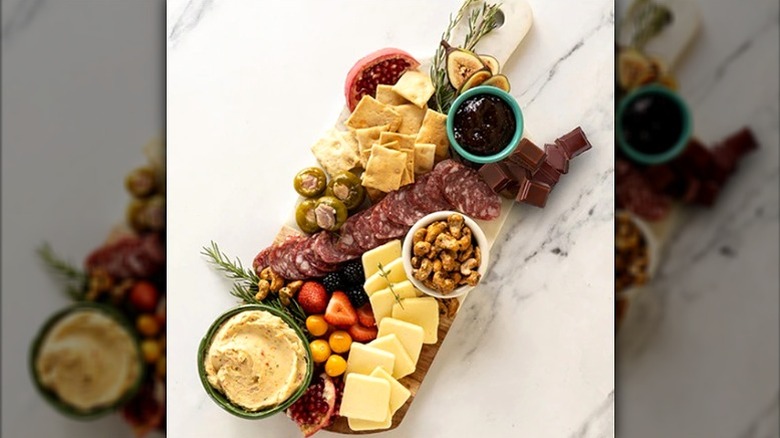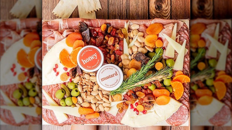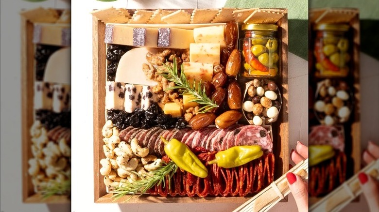 The MVP meat and cheese collection arrives in a box rather than on a pre-arranged platter, so you'll need to assemble the display yourself. Inside, you'll find treasures like aged Gruyère, bold blue cheese, buttery and oniony Grayson (a semi-firm raw cheese made from cow's milk), creamy Humboldt Fog (goat cheese), clothbound cheddar, silky prosciutto, and wild boar salami, paired with tasty extras like olives, crackers, and fig and olive crisps. All of this adds up to an impressive spread meant to be shared with others.