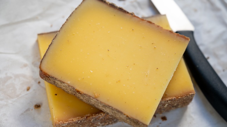 If you fancy a semi-soft cheese that has a creamy consistency but more of a punch of flavor, taleggio will do the trick. This Lombardy specialty is a washed-rind cheese that's popular in Italy but doesn't feature as often over in the U.S. When first presented with a piece of rind-on taleggio, you may be put off by its pungent smell. However, once the pale orange exterior is removed, it reveals a delicious white flesh with a soft, sticky texture and a mild, slightly tangy flavor. It pairs brilliantly with its cured meat ally from Lombardy, bresaola, or any other deli meats as part of a charcuterie platter.