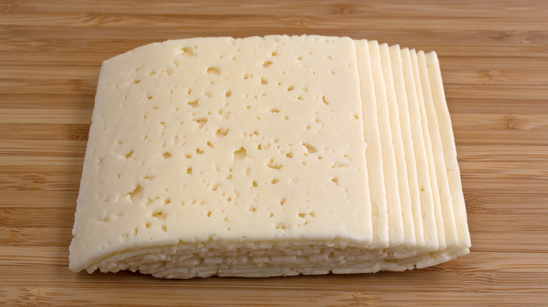 For an upgrade to your usual American or cheddar cheese on your sandwich, havarti is the meltable cheese you didn't know you needed. Originating in Denmark, it has a mild, nutty flavor and a soft texture, though it's still firm enough to be sliced. The cheese is a popular option in its Danish homeland, as its versatility means it can be used in so many culinary creations. A younger, mild-flavored havarti makes a brilliant topping for a burger, as the creaminess offsets the rich, meaty flavor of the beef. As the cheese ages, the nuttiness intensifies, making a mature havarti a delight for a charcuterie platter alongside some chopped nuts and fruit.