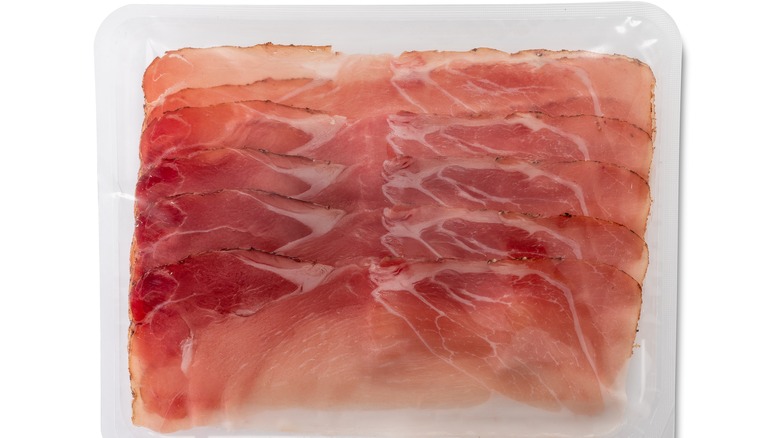 If you're a big fan of prosciutto (who isn't?), then you are going to love coppa, also known as capocollo, which means "head" and "neck." The meat is made from pig's shoulder rather than the leg, and has delicious marbling of fat throughout. Coppa is packed with flavor thanks to the various herbs and spices that are involved in the curing process — garlic, bay leaves, and cloves are just a few that can be used. The result is a mouth-watering cured meat that has the robust flavor of salami with the silky texture of prosciutto.