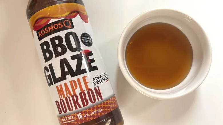 The Maple Bourbon BBQ Glaze is just one of Kosmos Q's many barbecue products. The brand sells multiple barbecue rubs (because yes, it's spelled 'barbecue' not 'barbeque'), injections, brines, soaks, sauces, and glazes. We were the only ones unhappy with the consistency of the maple bourbon glaze, with several other customers leaving reviews that it tastes "like straight maple syrup" or that they're "not a fan of the flavor." If you're a sweet barbecue fan, this might be a hit for you, but they still recommend pairing it with another sauce to make up for the watery consistency.