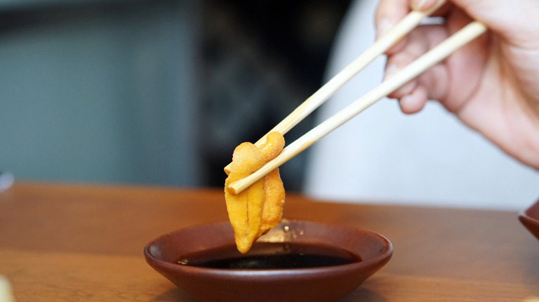 Whatever you do, don't mix wasabi into your soy sauce. While one of the more common mistakes at a Japanese restaurant, doing so takes away from the unique qualities of both ingredients. Plus, there's no way to tailor the amount of wasabi per bite, and some fish — like fatty tuna — benefit from a little extra. More than likely, you didn't know that — but your chef does! Sananikone affirms, "Part of the omakase experience is trust — you are placing your confidence in the chef's expertise and craftsmanship."