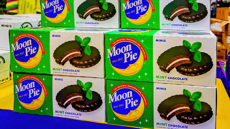 The tale begins in Kentucky and involves Chattanooga Bakery, a traveling salesman named Earl Mitchell, and a hungry coal miner. While venturing through the Bluegrass State, Mitchell talked with a coal miner, who asked Mitchell for a snack "as big as the moon" to feed hungry miners who often spent all day underground (via MoonPie). A simple request led bakers to oblige and create the MoonPie — a union of round, 4-inch diameter graham crackers and marshmallow filling enrobed in a chocolate coating.