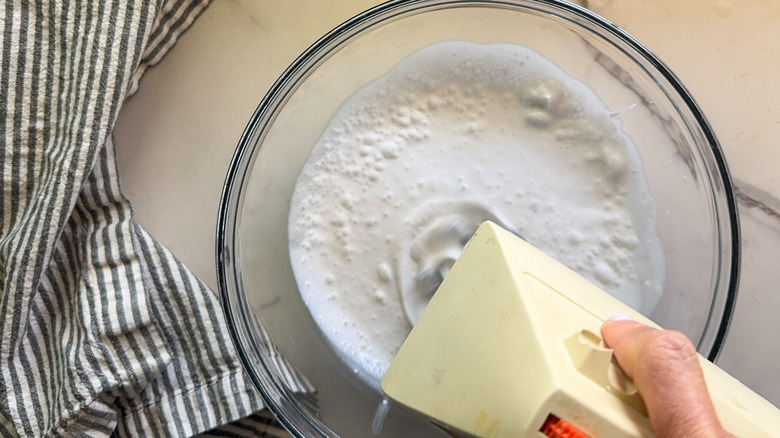 Step 3: Beat the cream with a hand mixer