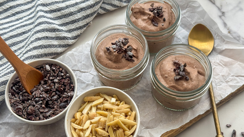 - The mousse is ready to serve as is, or topped with optional nuts and cacao nibs as desired.